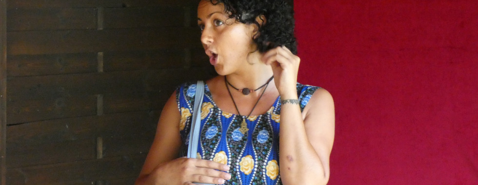 Lors de notre visite afin de découvrir ces ateliers, nous avons pu également échanger avec Virginie de la compagnie Maecha Métis. La comédienne intervenait justement dans le cadre du dispositif Guétali de la Région Réunion qui vise à démocratiser le théâtre dans les quartiers. Au programme séance d’impro pour les participantes de l’atelier et spectacle joué par la compagnie le lendemain à l’association : « On essaye à travers ce dispositif d’enlever les œillères que peut avoir le grand public à propos du théâtre. On leur montre d’autres formes de spectacles qui brisent les clichés et qui illustrent le fait que la scène est accessible à chacun. Le théâtre permet d’exprimer des choses que l’on ne peut pas toujours exprimer dans la vie de tous les jours où on est invité à rentrer dans un moule avec une pensée unique. Le théâtre permet justement de renouer avec soi-même et de retrouver cette liberté. »